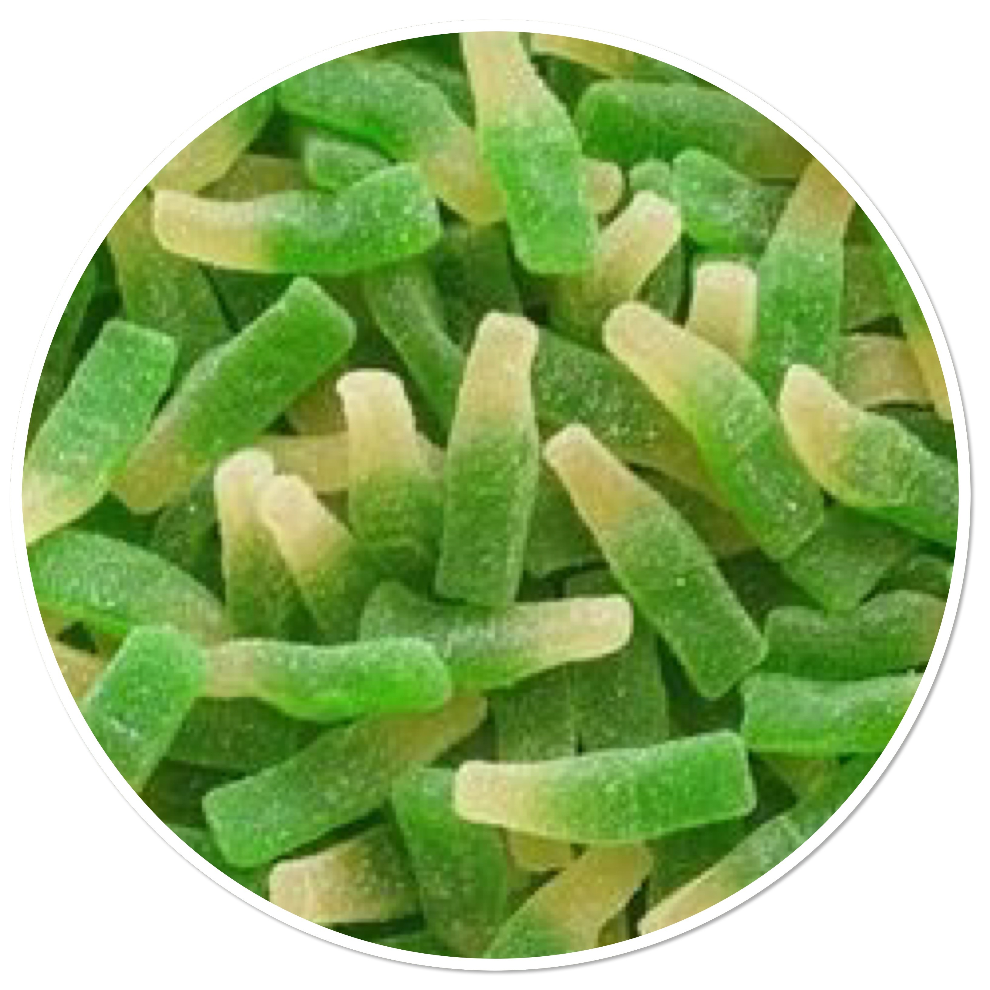 Ingrédients : (sous réserve de modification par le fabricant) Sirop de glucose, sucre, eau, gélatine de boeuf, amidon modifié de pomme de terre, acidifiants : E330, E270, arôme, colorants : E100, E133. Sans Gluten.